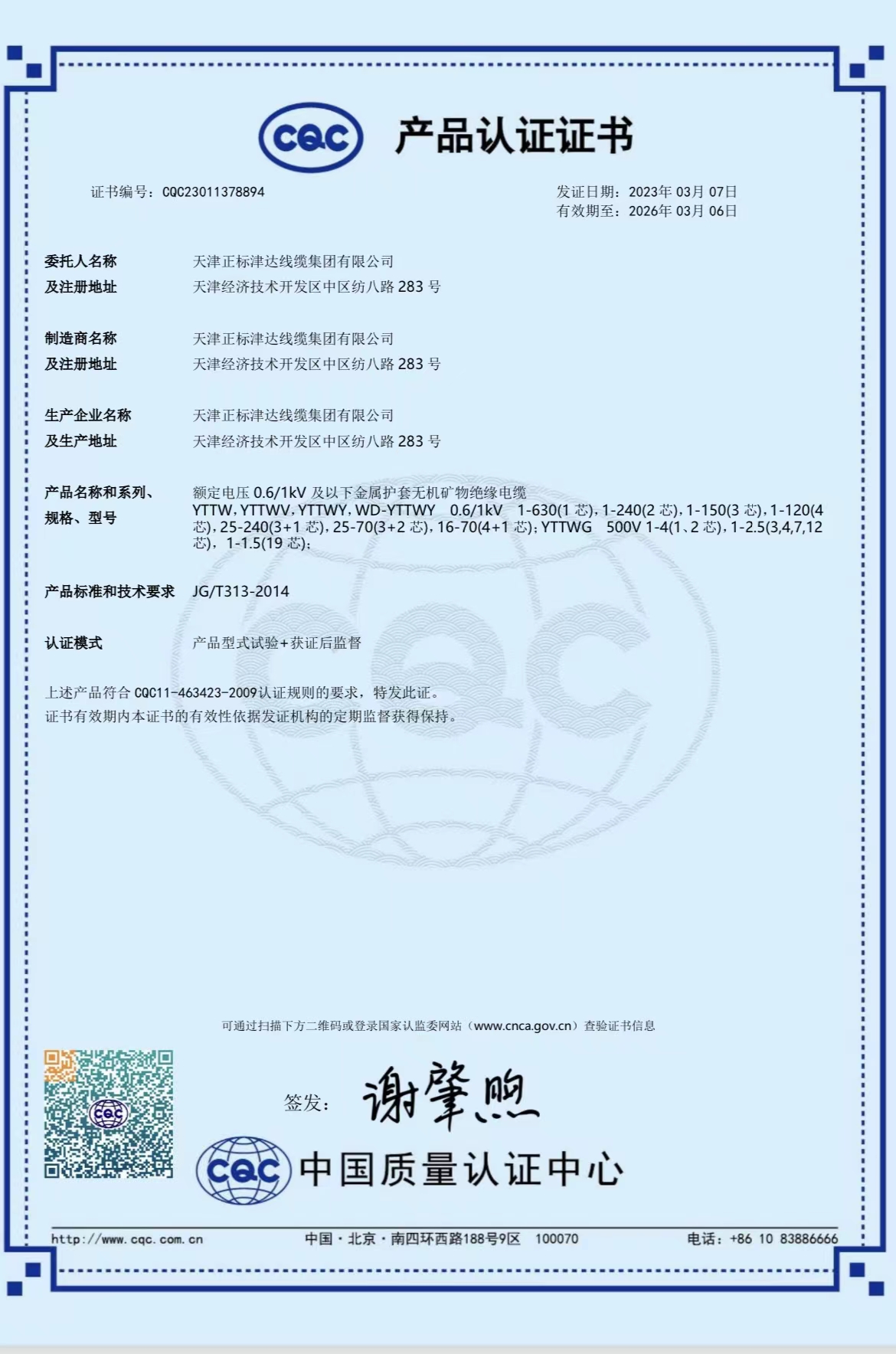 云母帶礦物絕緣銅護套電纜(RTTZ、YTTWY)最早初,我國的礦物絕緣電纜只有同步國際標準…津達電纜安全規(guī)定