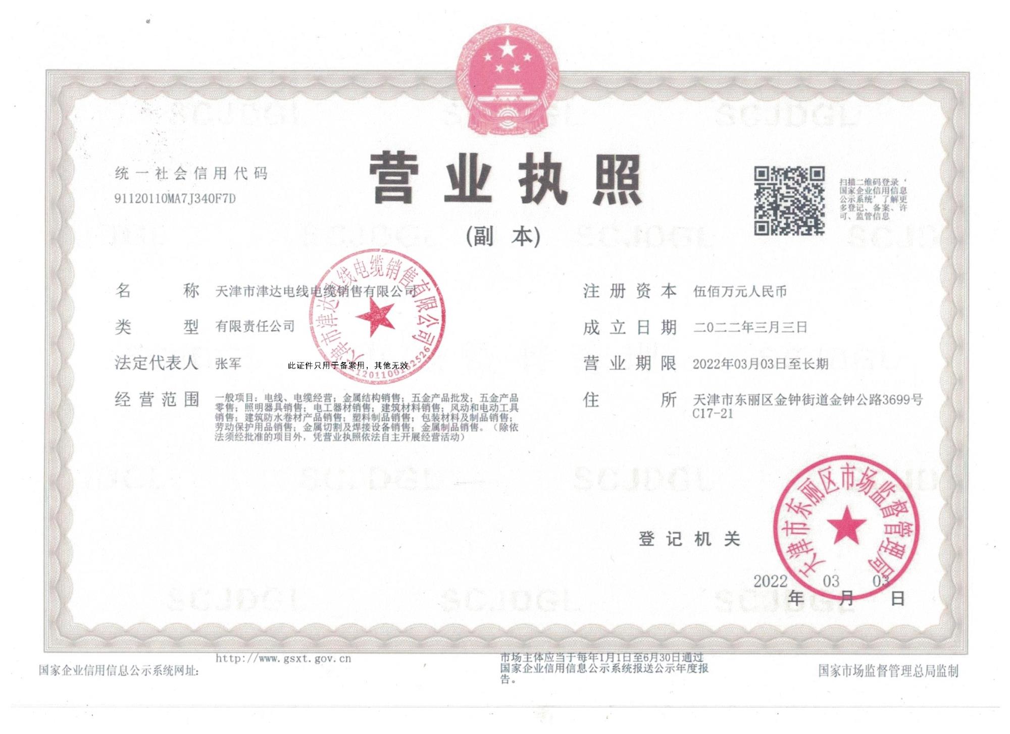 天津市津達電線電纜的案例展示正規(guī)資質,當然不負重托· honor